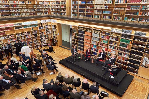 Unter dem Titel „Demokratie, Krise und Kultur – Ein Gespräch über Verantwortung, Haltung und Methoden“ sprach Präsidentin Ulrike Lorenz mit Günter Winands, stellvertretender Vorsitzender des Stiftungsrats der Klassik Stiftung Weimar, Jan Philipp Reemtsma, Publizist und Mäzen, und Tilman Reitz, Professor für Wissenssoziologie und Gesellschaftstheorie an der Friedrich-Schiller-Universität Jena.
